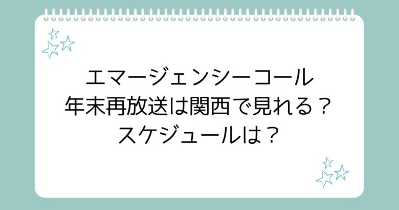 この記事では『エマージェンシーコール年末再放送は関西で見れる?スケジュールは?』と題して、