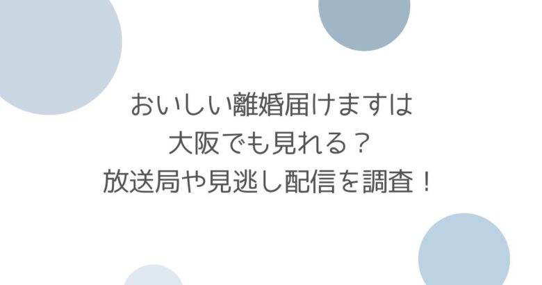 そこでこの記事では『おいしい離婚届けますは大阪でも見れる?放送局や見逃し配信を調査!』と題して、